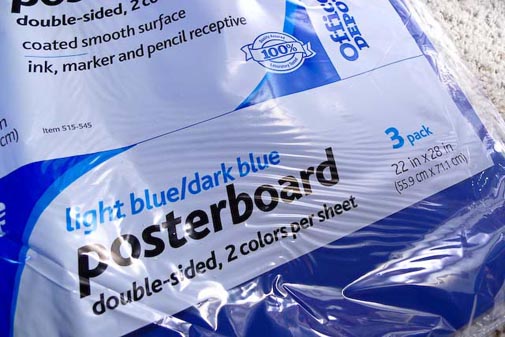 – 1 x pack of 3 blue / light blue poster size art paper. Each sheet has light blue on one side and dark blue on the other side. ($4.99)