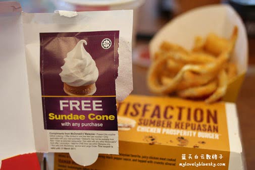 如果你买McDonald’s Prosperity Burger套餐的话,麦当劳赠送红包封一个,红包封里面有赠品。我们买了2套McDonald’s Prosperity Burger套餐,得到了2分赠品都是Sundae cone。小孩子最开心了。