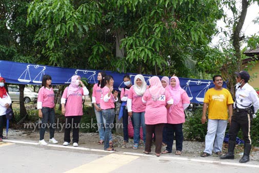 拍了一些补选的拉票画面给你们看看。巫统妇女组穿上了粉红色的t-shirt站在学校外面。