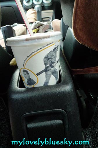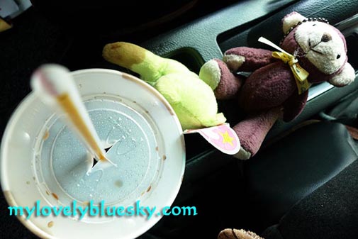 上个星期,我们和天使熊猫见面,怎么和TY Bear扯上关系??扯上关系是因为我是超级无敌懒惰虫。上个星期和他们见面之后,我贪心,拿着汽水杯柜台再装满了汽水才离开麦当劳,喝了几口的汽水,我把汽水杯放在 汽车的杯垫内。较后,我忘记了这个杯子在车上。一整个星期,上班下班都没有去想杯子在车上。