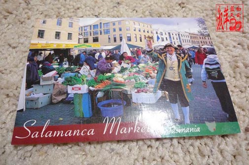 这张明信片介绍了澳洲Tasmania的Salamanca Market。从这张明信片里,可以看到这个地方很热闹!!其实,我在马来西亚的时候常逛市集,可以看到生活百态,还有可以看到市集摆卖产品的五彩缤纷。只是我不知道自己有没有机会去这个地方。