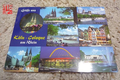 Yoon Lai是我在Multiply里认识的朋友,她知道我有收集明信片的习惯,就马上向我讨地址,当然邮差也很合作马上把明信片送来了。这张明信片介绍了德国的Koln am Rhein,不曾到过欧洲的我,看到明信片里的景色都很美,有蓝天白云,有神秘的古堡,有蔚蓝的湖水。。。。。。有点像梦境。