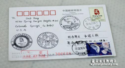 呵呵,原来是有中国大陆的名信片,不过好像只有一张,我下次也给你寄哈,不过要地址。