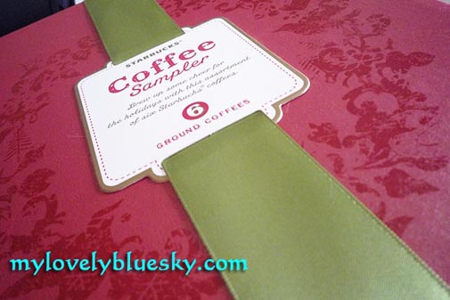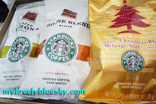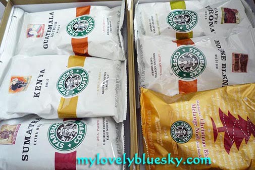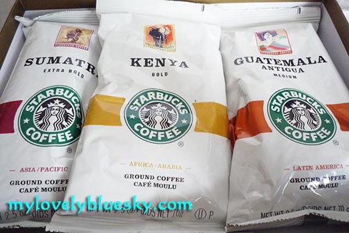 这6包咖啡豆有Guatemala Antigua, Kenya, Sumatra, Starbuck Christmas Blend, Caffe Verona和House Blend。每次权雄买咖啡豆都是尝试买不一样的咖啡豆,因为他想找出适合自己的口味的咖啡。可是他尝试了几种口味的咖啡豆了,还没有找到他喜欢的咖啡或者说适合自己的口味。若是我买了这Starbuck Coffee Sampler,权雄可以有机会尝试6种的咖啡豆,希望他可以找到适合咖啡豆吧!!