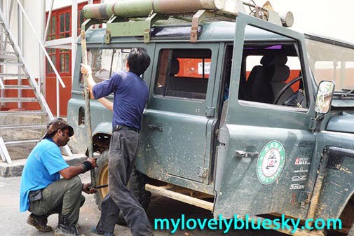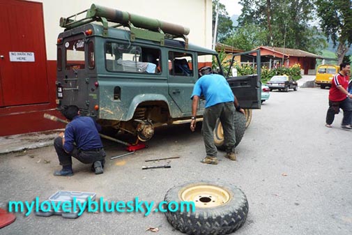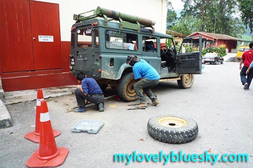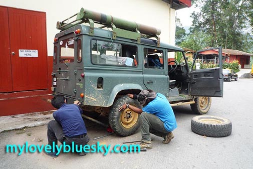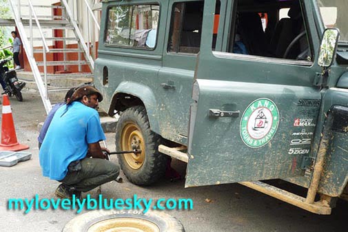 人家来到金马伦看景点,我竟然花了将近15分钟站在那边看人家换轮胎。你说我怪不怪?没办法,我的好奇心强!!难听一点就说我八卦吧!!哈哈!!权雄忙在那边拍花花草草,不理我!!