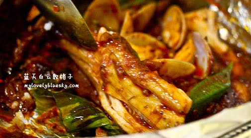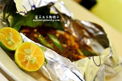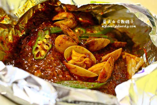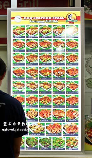 Portuguese Grill Fish的选择很多,不只是烧魔鬼鱼,也有其他海鲜,譬如墨鱼,蛤蜊(拉拉),甘望鱼,虾等等,同时也有蔬菜系列。价钱从RM4.90-7.90,有多样化的搭配。从menu可以看到了葡萄牙烧鱼特色:用锡纸包着海鲜或者其他材料,再淋上特制的辣椒酱,放在火炭上烧烤。
