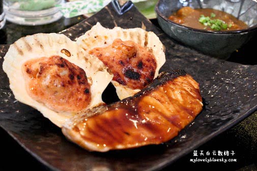 权雄点了Sakae Gozen套餐,价钱是RM32.90,套餐里包括了日本咖哩,铁板烧烤干贝和三文鱼, chawanmushi和蒸饭。你看到上图是不是觉得这样的价钱有这样的分量都很值得吃了?