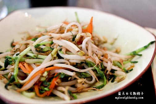 把豆芽,豆苗和萝卜丝炒在一起。平时,我不喜欢吃生的豆芽,我要求厨师把豆芽炒熟了,可以看到他们只是放几个配料下去炒,怎么味道炒出来就是这样好吃??百思不解。我爱吃这一盘。