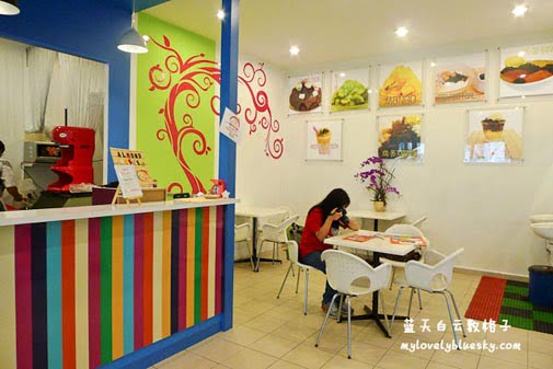在这里,我想向大家推荐不止是甜品,还有该店设有儿童角落。该店的桌子都是以白色为主,他们在一个角落布置了七彩的墙纸和地板,把白色的桌子放在内。有不少小孩路过的时候,误以为是冰冰台湾甜屋有游乐场所。哈哈!!