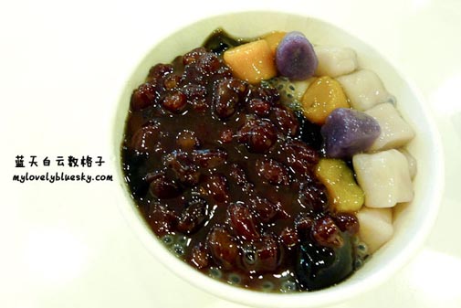 我点的冰冰选择了酸梅口味,酸梅冰上有仙草,仙草上有蝌蚪、红豆和芋圆。服务生告诉我酸梅口味是该店的畅销口味冰冰,我吃了一口,酸酸中带有少许甜,我很喜欢。常看《蓝天白云数格子》的朋友,都知道我爱吃红豆,这样的搭配对我来说好吃!不过芋圆的口感还是输给Snowflake,胜在可以省下车马费去吉隆坡。