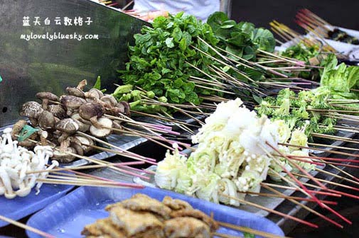 当时顾客不多,我忙着拍照。少顾客,好拍照。 老板娘也不理我,笑嘻嘻让我拍照,对我说谢谢。权雄负责选择串串乐乐,权雄够了解我,他知道我爱吃鱿鱼,拿了数串。