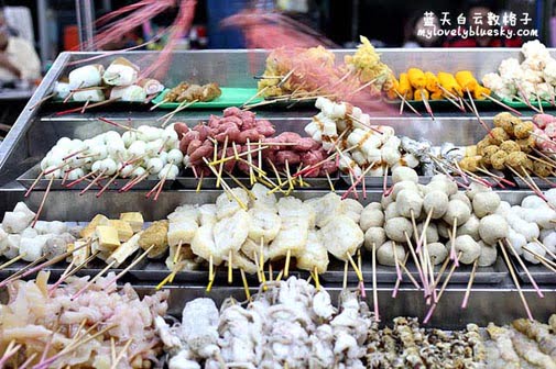 海边乐乐的选择多,他们除了准备新鲜海鲜,丸类,蔬菜,也有准备了一些炸料。如果你选择炸料的话,你把你选择的串串乐乐交给老板娘,老板娘将会帮你炸。我们两人都没有选择炸料。