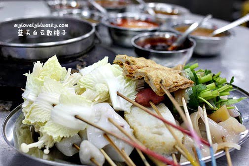 在才能园贪吃街,经营乐乐的方式,并不像槟岛的槟华乐乐,把所有的材料挤满在一张桌子,你要吃什么就直接从桌面上拿起来放进锅里;才能园贪吃街的经营方式是你先从档口选择串串的乐乐,放在一个盘子里,如果你4个人前来,可以各自选择各自想要吃的材料,然后回去桌位上,才把乐乐放进锅里弄熟。