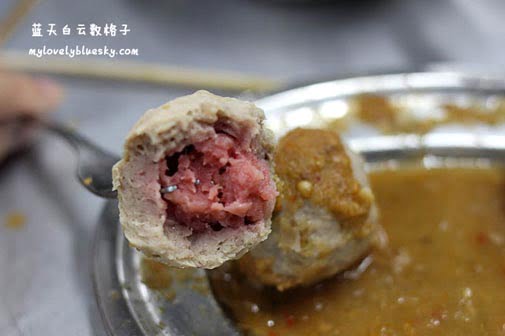 这一次吃乐乐,给我最大的发现,认识多一种肉丸,这一种肉丸外表看起来就是一般猪肉丸,咬了一口看到里面有带红的肉丸成分,那是台湾香肠。老板娘称它为通心丸,她说巴杀比较少卖,通常只有大节日才有卖,因为该通心丸价钱比较贵,平时少人吃。你们吃过吗?