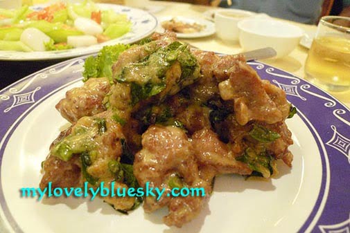 第一道菜肴是盆菜,从照片看起来,好像无法看到这个盘菜有什么?没记错的话,我们吃的盆菜有鲍鱼,大虾,猪肚,香菇,菜花等等。以前在电视节目上,常看到一大伙人一起吃盆菜,很热闹!!今晚,我们10人一起吃盘菜,气氛充满了温馨。不是第一次吃盘菜,对我来说盘菜太丰富了。