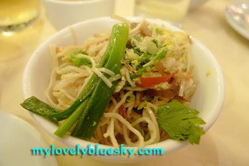 今天是爸爸的农历生日,当然有寿面。由于服务生没有把寿面放在我们的面前,服务生在一旁把寿面分成了10个小碗了。寿面是最后出来的菜肴,对我来说已经是太饱了,我只是吃了一点而已,肚子很涨了。