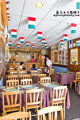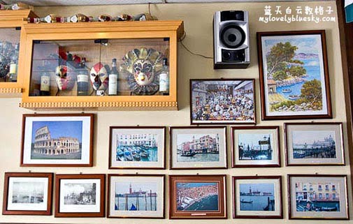 从进来Bravo Italiana开始,我目不转睛留意店里的摆设,摆设不失温馨气氛。店里摆设了很多和意大利相关的照片,有很多一罐罐看起来是酒,却是意大利烹调的材料!!老板说这些意大利烹调的材料都是从意大利进口来到了马来西亚,烹调Home made Italian Food,同时也要配合本土顾客的口味,看来老板花心思在烹调的材料,下足真材实料。