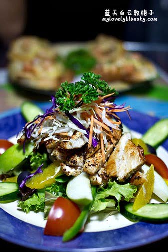 Grilled Chicken with Salad,价钱RM17,Stripes grilled marinated chicken, topped on fresh mixed salad。