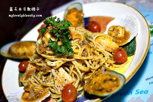 Spaghetti Capitano,价钱RM29.80,Spaghetti with fresh shrimps, scallops and mussels, squids and diced salmon, sauteed in a delightful marinara sauce