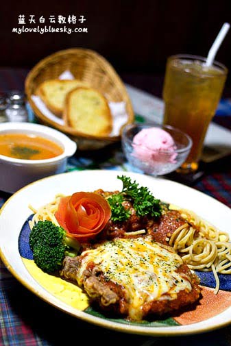 Set lunch,有soup of the day, Chicken Parmigiana, Ice cream, Ice Lemon Tea,价钱RM25。