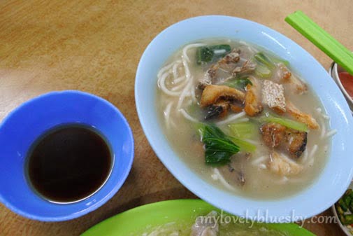 今早,我和李逸迷在MSN聊天,他告诉我尝试了我之前介绍的松和鱼头米粉,他的评语是味道普通。他个人的鱼头米粉口味是清淡得来,鱼肉又香脆的。那么我就趁机要他介绍他心目中的鱼头米粉的档口,我也很想知道他的要求的口味是否和我一样。他介绍了2个地方-中南和和记。和记算是比较靠近我们住家,他说和记的鱼头米粉味道比较浓郁的,不过胜在鲜味一流的鱼头米粉。