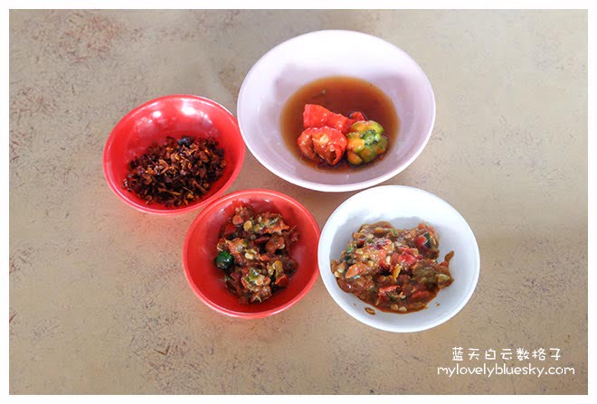 - 下左:无辣的叁峇,简称“不辣”。亚强说这个辣度不够刺激,问题是我吃一点点已经辣到把水喝到七七八八了。温馨提醒,如果你平时不能吃辣的话,你就不要挑战,不然后果不堪设想了。