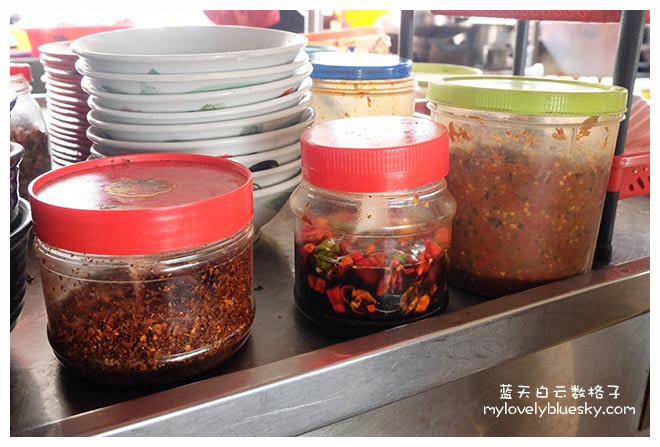 阿强售卖云吞面24多年了,他本身很爱调配不同辣度的辣椒给顾客来搭配云吞面一起搅拌吃。他调配的叁巴(Sambal)分成了小、中和大辣。问题是笔者吃小辣的Sambal 都已经差点流眼泪了,可是那些顾客竟然还对老板说不够辣!!强中自有强中手。结果,另外还有魔鬼辣椒和辣椒粉给你添加。有时搞到不清楚这些顾客是爱吃Sambal ,还是老板的云吞面?