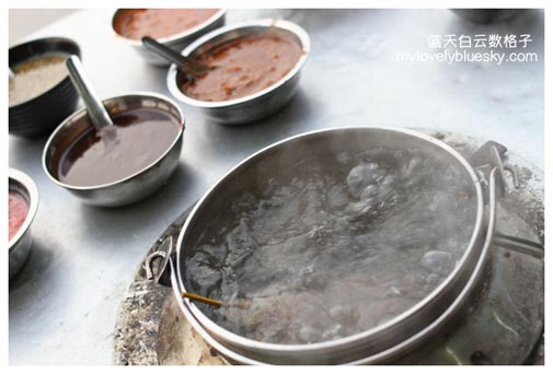 一般上,我们吃的乐乐的酱料选择2-3种,有Satay、甜酱和辣椒酱。然而天天新乐乐推出了8种酱料,这也是陈老板每天要花很多时间准备。他们的酱料选择有酸辣酱(最辣)、泰式酸辣、Sambal虾米、Satay酱、Asam Laksa酱、甜酱、江鱼仔东炎和酸甘蒜头。个个酱料都好吃和特色。