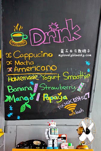 工作人员很快递上了该店的menu 给我们看看,我和权雄刚刚在大山脚吃了芋饭。肚子尚饱,我们不打算吃正餐,喝饮料聊天。要喝什么饮料呢?我觉得Menu无法吸引我的眼光,我比较喜欢抬头看墙壁上写的饮料选择。哈哈!