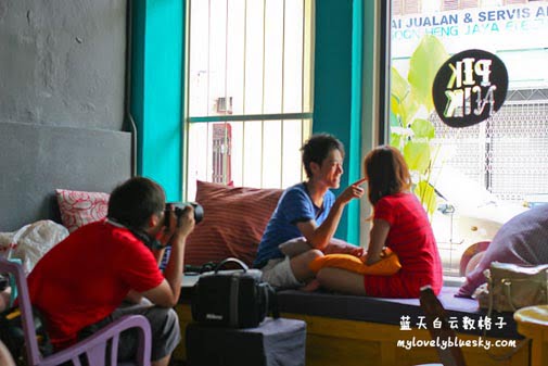 在等待饮料上桌之前,我们拿起相机到处拍摄,该店允许我们拍摄,我们看到有对小情侣和朋友在玩拍专辑照。在槟岛不少古迹区的咖啡馆都写着不准模特儿拍摄,因为不想要顾客的拍摄影响了其他顾客的用餐,可是我在这里没有看到“No Model Shooting”的字眼,看来这里会成为摄影发烧友带朋友前来拍摄写真集了。哈哈!!