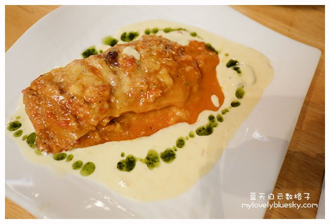 权雄点的Baked Chicken Lasagne,他说cheese带有点硬(疑不够熟)之外,不然整体可以给满分了。哈哈!我们两人都觉得这里并不是什么大餐馆,可是食物整体得味道都比起市场上的餐馆来好吃,至少我们两人都吃到津津有味了。这一餐花了RM39.80。情人节不是要吃大餐吗?没有了,不难发现这些年来在佳节庆典上,我们未必。