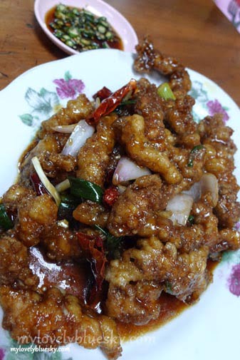再来多一盘辣辣的食物,那就是马来风光,对我来说还是我爱吃的食物。哈哈!!正合我意。可惜,有个人又在闹了,侄女又在说她不吃。看来点菜要考虑到小孩不吃辣。