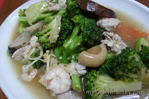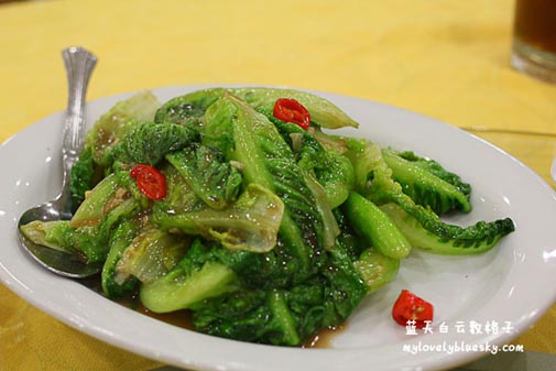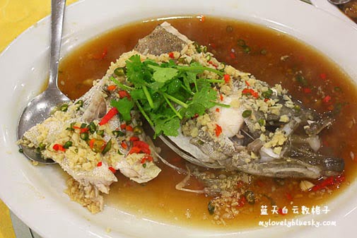 蒜蒸鱼头。爸爸特别交待要小的分量,因为只有3个人用餐,可是我们一看到这一盘的蒸鱼,开始担心吃不完了。不过味道真的好好吃,尤其蒜米和小辣椒带出来的蒜香味配搭得超好!怪不得爸爸最近爱来这里吃鱼头,鱼都很新鲜。吃起来都很开胃,在美食当前难说减肥了。