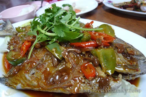 最后一盘就是三味斗底鱼。虽然这一道菜的名字有三味,可是我的口里只有酸辣味带有少许甜。这就是所谓的“三味”??
