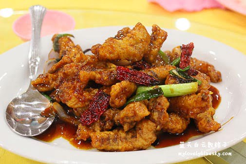 我点的宫保濑尿虾,很久没有在外面吃濑尿虾了。权雄不宜吃贝壳类的海鲜,今天他没来,我就点了。不过爸爸也不宜吃多。我很喜欢宫保的味道,辣椒干香带出的辣味总是特别香。