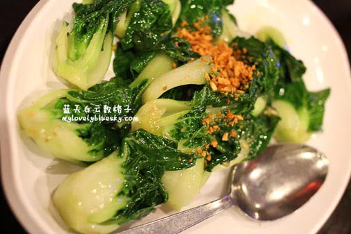 蒜油小白菜,妈妈最近才动手术,妈妈吃得很清淡,今晚有几道菜肴故意点给妈妈。有时点最简单烹煮的菜肴,反而弄到餐馆吓了一跳!哈哈!