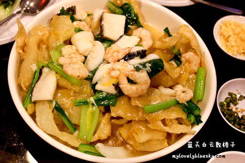 炸河粉,炸生面我们常吃。这是我们第一次吃炸河粉,河粉切块之后,然后放入油锅里炸过一番,再淋上了酱汁。看起来这一盘很大盘,可是分量是不多,只不过被炸过的河粉占位子。我很喜欢吃炸河粉,咬下去带有少许咔咔声音。哈哈!!如果我再来的话,我会再点。可是弟弟却不怎么喜欢吃。