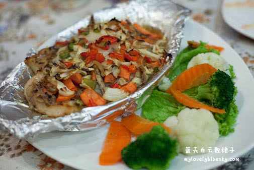 Baked Fish套餐,价钱RM42。鱼肉很大片,不过味道很怪咯,鱼带有腥味,厨师尝试以胡椒味道来盖过腥味。 权雄认为是西洋人的“潮州蒸”,呵呵!这样也给他想到。我只是不要吃太油腻的食物而以,蒸鱼对我来说还好啦。不过我吃不完。