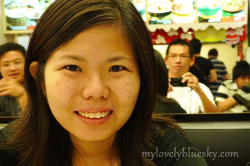 在等待食物到来的时候,权雄玩摄影,为我拍摄了一张大头照,可以看得很清楚我的雀斑越来越多,皱纹也出来了,暗示我老了。虽然如此,把照片放上来记录着我2009年最后一天的样子!!不好意思,委屈你们眼睛了。