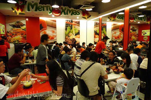 可能Queensbay Mall的Live动全城倒数派对在Queensbay Mall外面举行,Queensbay Mall里的餐馆都爆满,有些餐馆还要排队等候。我们选择的台湾公牛刚好有2个人的位子,我们顺理成章不必等候就找到位子了。