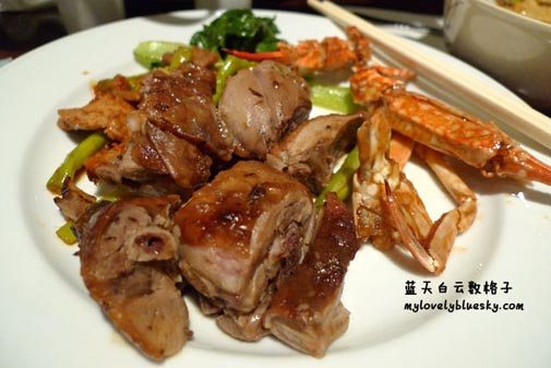 家婆帮我拿了一盘烧鸭和螃蟹。原本不打算吃螃蟹了,可是看到了又忍不住。只是感觉到螃蟹的不是如此新鲜。