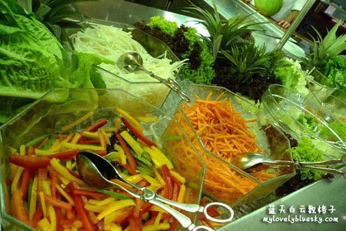 吃了一大堆比较油腻的食物之后,我拿了一小盘的沙拉来自我安慰!!哈哈!!不然,我会有罪恶感!!哈哈!!女人啊!!女人!!就是这样贪吃又怕肥!!