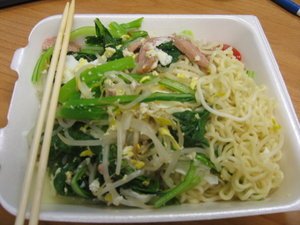 5月8日 星期四 工作了几天,不少关心我的朋友都问候我,也很想知道公司提供的早餐和午餐是如何?今天,向负责人拿到了在公司拍照的允许,我决定把早餐和午餐拍出来,给大家看。哈哈!!趁机,我有机会诱惑 Sherene 了,给他看看我的早餐。不然 Sherene一直找食物出来诱惑我的肚子!! 这里的早餐和午餐的时间和我过去的早午餐的时间很不一样。早餐大概10点左右,而午餐大概是3点左右。幸亏,我有听 Eunice的话,第一天上班的时候带面包以防不适应食物和肚子饿。谢谢 Eunice的提醒。就在这样的情形下,我第一天上班没有饿坏。 到底我的早餐是什么?这几天的早餐,有个帅哥同事煮了很不错的面条给我们吃。昨天他煮的面很好吃,可是没有带相机把它拍下。今天他煮的面,他特别强调今天的早餐很不一样的地方是有鸡蛋, 快速面饼+豆芽+菜心+Ham+ … [Read more...] about 早餐+午餐