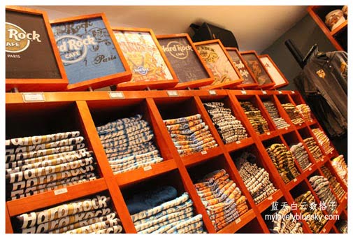 Hard Rock Cafe 对很多人来不陌生,欧洲游的旅程,我们有机会去3个Hard Rock Cafe ,去不一定是要用餐,我们要购买纪念品,巴黎的这间走进来的第一个部分就是商品部,然后后半部是咖啡馆。商品的选择说起来大同小异,不过我们在选择Hard Rock Cafe 的Tshirt 都要有巴黎铁塔地标设计。