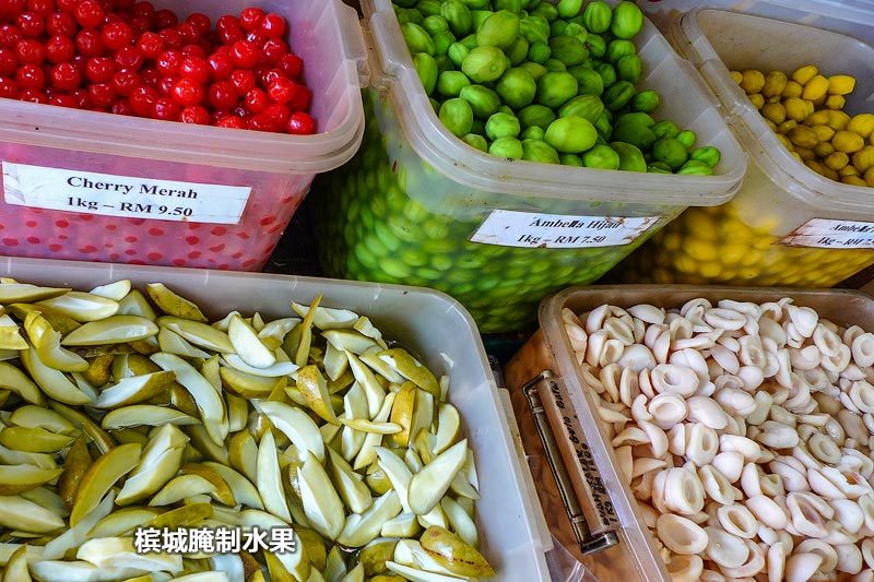 台南市政府参事殷世熙在活动上提到台南不管什么季节都盛产水果,譬如: 春天有枣子、夏天有龙眼、秋天有柚子、冬天有橘子,再加上嘉南平原非常适合种植黄梨与芒果,所以当地都很喜欢把水果做成蜜饯,一来方便存储,二来也成为台南最佳伴手礼。 在槟城的 Penang Road 上,我们也可以看到有很多售卖腌制水果的小吃,当中来到槟城最不可错过的腌制豆蔻
