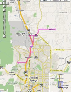 之前,很紧张和大家分享游行,结果只是大略介绍了Black Forest(黑森林)这个地方。就觉得不少人对这个地方有点好奇,怎么黑森林不是漆黑一片??为了让大家了解Colorado Springs的黑森林,我就在这里介绍这个小市镇。黑森林这个地方不是很大,面积有200,000acres,从Highway83到 Eastonville Road。这个地方有大量的树林和草原。