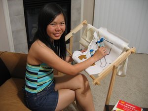 目前,我已经完成了第二副十字绣的90%了。来了这里之后,我开始学作十字绣,培养我的耐性。 有权雄的帮忙之下,我可以做出自己喜欢的图案,不必去买版图,因为我发现市场上卖的十字绣的版图没有我喜欢的图案。一针一线慢慢地完成十字绣,很花时间, 有时做了整个下午,才完成两行或三行,可能是我的速度比较慢。