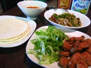 工作了两个星期,开始对于两天的休假-星期六和星期日,特别珍惜!!为什么呢? 第一,我不必太早起床,可以睡到太阳晒屁股!! 第二,我可以做一些运动或小小嗜好!! 第三,我可以下厨为权雄准备三餐!! 2008年5月18日 星期日 今天,我们两人又再睡得很迟!!醒来的时候,可以开始准备午餐了,我的脑子里还不是很清醒,不知道该准备什么? 权雄就建议吃墨西哥餐,不是出外吃,而是我们自己做墨西哥餐!你们会做墨西哥餐?权雄做的墨西哥餐有点亚洲化,因为他把牛肉炒成黑椒式。之前和大家介绍过的 出外吃的墨西哥餐,大致上和薄饼一样,不一样的是换成包肉和菜!! … [Read more...] about 你煮墨西哥餐,我煮云吞面!!