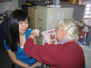 来到诊所时,已经迟了,还有五分钟就要收工了。诊所里只有一个护士和一个病人。护士说我们 不迟,愿意帮我们两人注射预防针。我怕打针,因怕痛,很有礼让精神的我让权雄先打针,他说不痛,不知是不是故意安慰我。 到我了,没眼看那只针,还好的是不是我想象中的痛。由于我是第一次注射这预防苗, 护士要我留下来十五分钟,她担心我的身体有不适。
