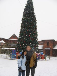 可能是圣诞节的来临,到处的店面都以圣诞节为主题来设计,拨圣诞歌,气氛浓厚。 这个地方摆放着一棵好好高的圣诞树,我们赶紧拍下照片,因为上2次都忘了带照相机。
